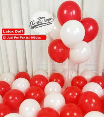 Balon Doff Merah Putih 1 Pack Isi 100 Pcs / Balon Latex Doff Per Pack