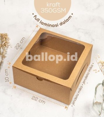 Kraft Mika Laminasi 22x22x10 CM | Kotak Kue Premium untuk Cake, Tart, dan Pudding