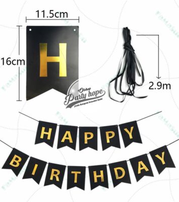 Banner Ulang Tahun Hitam dengan Tulisan Emas – Hiasan Semarak untuk Setiap Perayaan