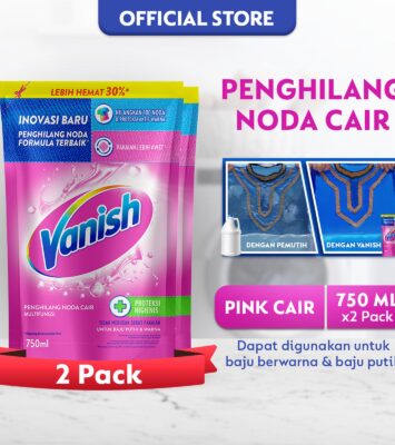 Dapatkan paket hemat 2 pouch Vanish Pink Cair, penghilang noda pakaian berteknologi tinggi. Formula khususnya efektif...