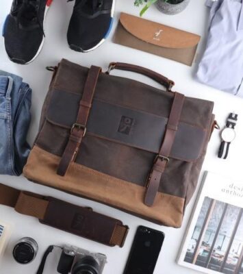 Tas Selempang Kantor Laptop Pria Wax Canvas + Kulit Asli Ishiya Agate