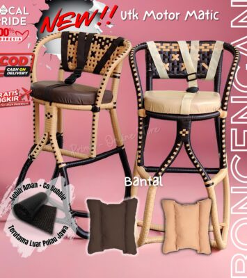 Kursi Boncengan Anak Rotan Asli untuk Motor Matic – Bonus Bantal + Sabuk!