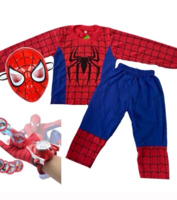 Kostum Spider-Man Lengkap dengan Topeng dan Sarung Tembak untuk Anak