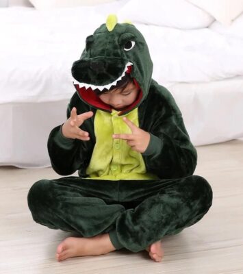 Kostum Onesie Dino Dinosaurus Hijau Piyama Cosplay Anak