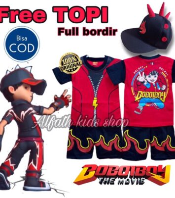 Setelan Kostum Boboiboy Halilintar Anak + Topi Gratis!