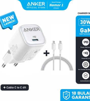 Adaptor Wall Charger Anker 30W GaN ICE-COOLED: Pengisian Cepat & Aman untuk iPhone dan Samsung