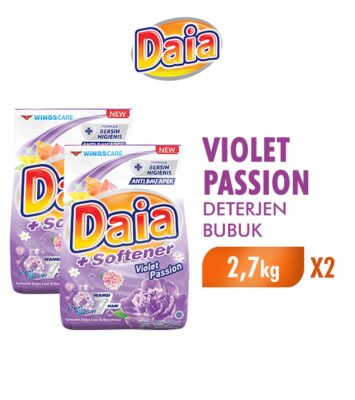 Dapatkan paket hemat 2 kemasan Daia Deterjen Bubuk Violet Passion berukuran 2,7kg. Produk ini telah terdaftar di BPOM...