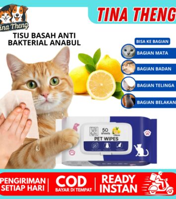 Tina Theng Tisu Basah Hewan Pet Wipes 80 Series Fresh Lemon Scent 50 Sheets Anti Bakterial & Moisturizer
