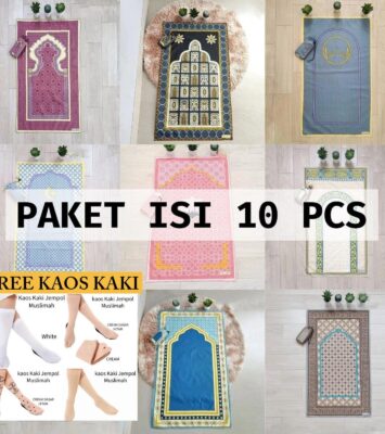 Detail ProdukSpesifikasiJumlah dalam Kemasan10 pcs sajadah + pouchBahan MaterialPolyester printing berkualitas...