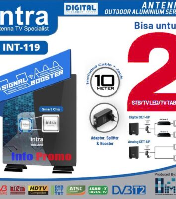Antena TV Indoor Outdoor Intra INT-119 untuk 2 TV Digital & Analog