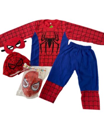 Kostum Spiderman Anak Laki-Laki dengan 3 Topeng