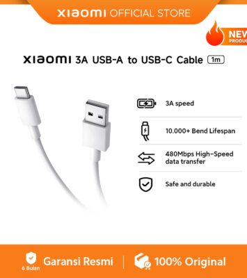 Tingkatkan efisiensi pengisian daya dan transfer data perangkat Anda dengan Xiaomi 3A USB-A to USB-C Cable. Kabel ini...
