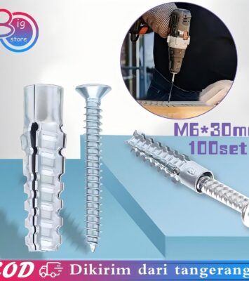 100set M6x30 Angkur Baut Tembok Sekrup Wall Anchor