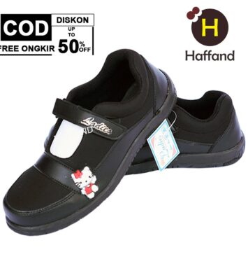 Flat Shoes Anak Perempuan Sekolah SD dan TK / Spotty Hello Kitty Hitam 26-35