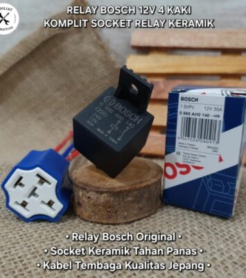 Relay Bosch 12V 4 Kaki 30A + Soket Keramik Tahan Panas