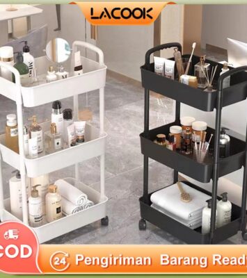 Cod Lacook Rak Toilet Rak Serbaguna Square Rak Dapur Rak Susun 4 Tingkat Dengan Roda