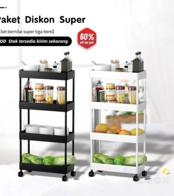Cod Rak Serbaguna Supercook 4 Susun dengan Roda