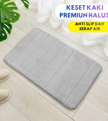 Keset Kaki Anti Slip Bahan Memory Foam Motif Polos Serap Air Premium