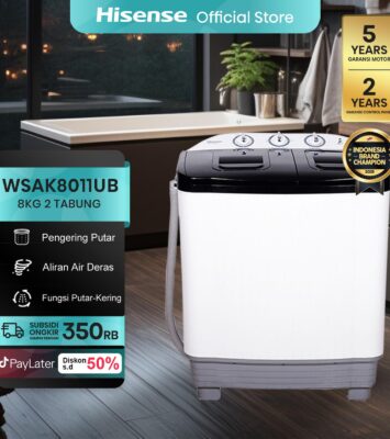 Hisense WSAK8011UB Mesin Cuci Twin Tub 8kg: Cucian Bersih, Pengeringan Cepat, dan Hemat Listrik