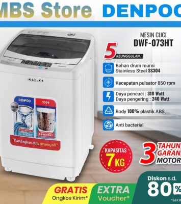 Mesin Cuci Denpoo 1 Tabung DWF 073 HT Top Loading 7 Kg