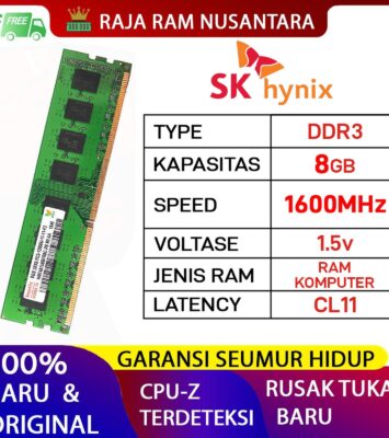 Upgrade performa komputer Anda dengan RAM Hynix DDR3 8GB yang asli dan berkualitas tinggi. Dibekali kecepatan 1600MHz...