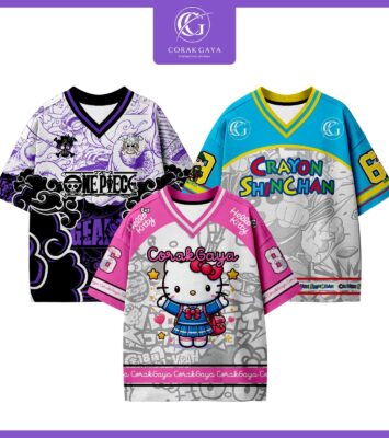 Corak Gaya Sport Baju Kaos Jersey Anak 2-12thn Oversize Dryfit Rugby Baseball Retro Streetwear