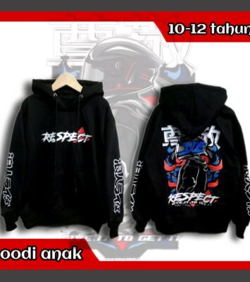 Hoodie Anak Laki-Laki ‘Respect’ Hitam Premium, Usia 7-12 Tahun, Bahan FleeceUkuranPerkiraan UsiaPanjang...