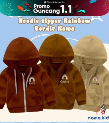 Hoodie Zipper Anak Bordir Nama Custom – Sweater Lucu dengan Karakter Pelangi