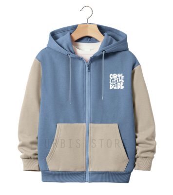 Jaket Hoodie Zipper Anak Laki-laki Perempuan Usia 3-13 Tahun Cool Little Dude Motif Kombinasi Warna Bahan Fleece Tebal Premium