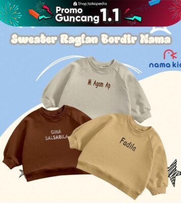 Tampilkan gaya unik si kecil dengan sweater hoodie custom bordir nama. Model raglan yang nyaman dipakai, tersedia dalam...