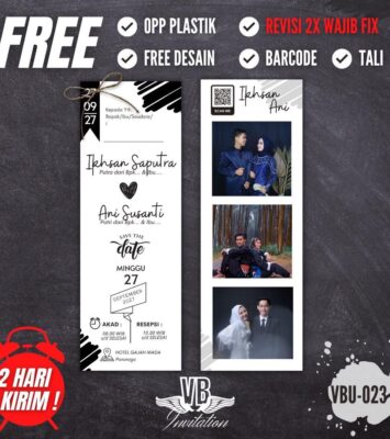 Undangan Pernikahan Lipat 2 F (Free Plastik, Denah, 2 Foto, dan Barcode)