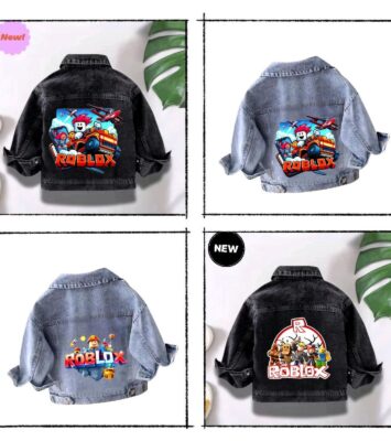 Jaket Jeans Anak Cowok Cewek Motif Roblox Usia 1-9 Tahun