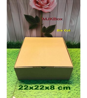 Spesifikasi ProdukKeteranganNama ProdukKardus Pizza / Karton BoxUkuran (P x L x T)22 cm x 22 cm x 8 cm (Ukuran...