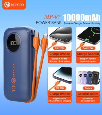 Mixio MP-07: Powerbank Mini 10000mAh dengan Fast Charging 22.5W & Kabel Bawaan
