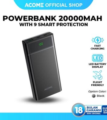 Tingkatkan produktivitas Anda dengan ACOME Powerbank 20000mAh, solusi pengisian daya ultra cepat yang kompatibel dengan...
