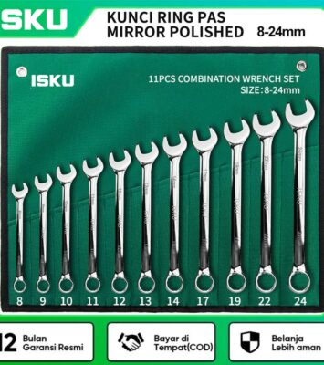 MerekISKUUkuran8, 10, 12, 13, 14, 17, 18, 19 mmTipe RatchetPada bagian Ring dan Pas (Open End)BahanChrome...