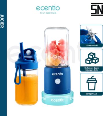 Ecentio Mini Portable Blender: Juicer 10 Pisau dengan 2 Cup Kaca & Sedotan