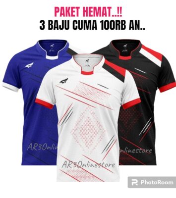 Paket Hemat 3 Baju Olahraga Pria/Wanita Kaos Badminton Bulutangkis Tenis Voli Sepak Bola Futsal Motif Terbaru