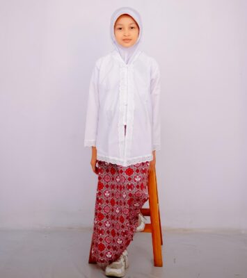 Setelan Kebaya Tangan Panjang untuk Anak SD, TK, dan PAUD dengan Rok Merah