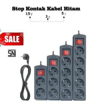 Stop Kontak 2/3/4/5 Lubang + Switch Kabel 1.5/3/5 Meter Series Hitam