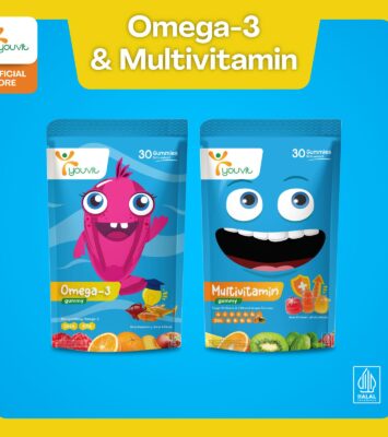 Dukung tumbuh kembang optimal anak dengan Youvit, kombinasi multivitamin dan omega-3 dalam bentuk gummy yang lezat dan...