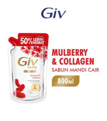 GIV White Sabun Mandi Cair Mulberry & Collagen Pouch 800ml