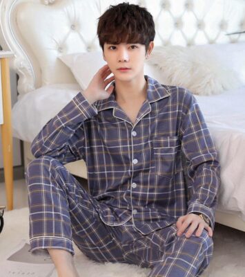 La Survie Piyama Cowok Motif Kotak-Kotak Model Kemeja