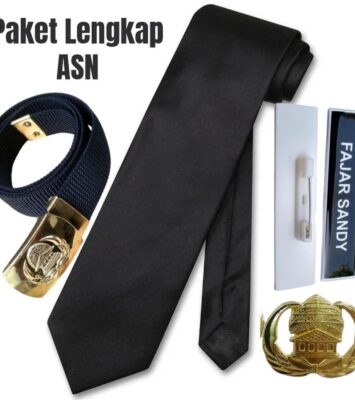 Paket Lengkap ASN: Ikat Pinggang, Dasi Hitam, Name Tag & Pin Korpri Akrilik
