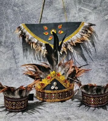 Tampil memukau dengan Mahkota Bulu Dayak Etnik Handmade yang dilengkapi kalung dan gelang aksesoris tari. Set ini...