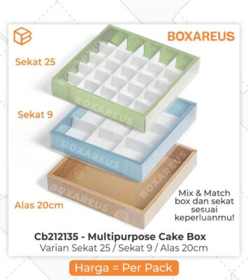 Tampilkan kue dan camilan Anda dengan kemasan premium yang elegan dan fungsional. Box CB212135 terbuat dari bahan...
