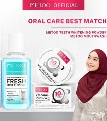 METOO Volcanic Pumice Whitening Tooth Powder & Fresh Mint Mouthwash Travel Set