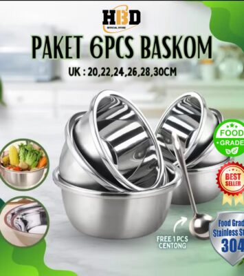 Tingkatkan efisiensi dan organisasi dapur Anda dengan set baskom stainless steel premium ini. Terdiri dari 6 baskom...