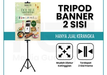 Tripod Banner 2 Sisi Stand Banner Promosi Kokoh Aluminium Alloy Hitam Adjustable Height 225cm X 125cm Praktis Untuk Indoor & Outdoor