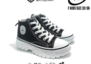 Sneakers For & Nice Kids’ Women Black – Sepatu Fashion Anak Cewek Korea Style Hitam Tinggi
